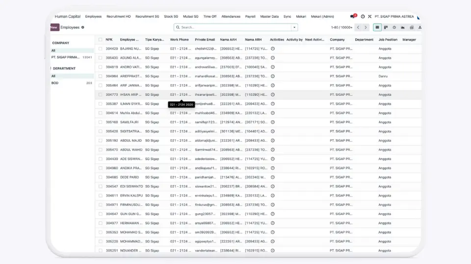Transforming the complex HR operations of PT Sigap Prima Astrea with a centralized Odoo ERP. From handling complex payroll for 12,000 security guards to automating client invoicing based on attendance